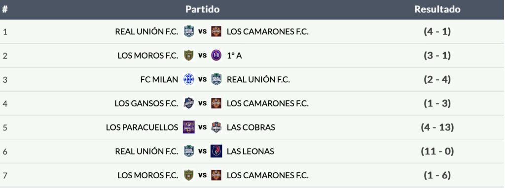 Tabla de resultados